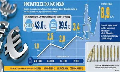 Η κυβέρνηση εμφανίζεται αποφασισμένη να προχωρήσει στην υιοθέτηση ευνοϊκότερης ρύθμισης οφειλών τόσο για την εφορία, όσο και για τα ασφαλιστικά ταμεία, υπό την πίεση της έλλειψης ρευστότητας και του μειωμένου τζίρου των επιχειρήσεων. Για την κατάρτιση του σχεδίου που θα εφαρμοστεί έχει χρησιμοποιηθεί ως «οδηγός» η λίστα των οφειλετών του ΙΚΑ. Ειδικότερα για τα ταμεία προβλέπεται η κατηγοριοποίηση των οφειλετών και η αποπληρωμή σε 100 δόσεις ληξιπρόθεσμων χρεών που δεν ξεπερνούν τις 15.000 ευρώ. Το πλαίσιο της πρότασης του υπουργείου δεν θα ξεφεύγει από την «ουσία» της σημερινής ρύθμισης οφειλών, απλά θα δίνει μια τελευταία ευκαιρία στους οφειλέτες. Σε διαφορετική περίπτωση θα βρεθούν αντιμέτωποι με μέτρα αναγκαστικής είσπραξης μέσω του Κέντρου Είσπραξης Ασφαλιστικών Οφειλών (ΚΕΑΟ).