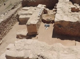 Τα διαμερίσματα που δημιουργούνται ανάμεσα στις αντηρίδες και τα άνδηρα δεν είναι νεκροί χώροι: σε αυτούς φιλοξενούνται οι αποθήκες και οι βιοτεχνικές εγκαταστάσεις του ανακτόρου. Η αποστολή έχει συλλέξει μεγάλο αριθμό θραυσμάτων από αποθηκευτικά αγγεία (ντόπια και εισηγμένα) και εντόπισε κατά θέση δύο πίθους, καθώς και λίθινους αγωγούς και λεκάνες. Μεγάλοι στρωτήρες (κεραμίδια) που χρονολογούνται στην κλασική περίοδο (μάλλον στον τέταρτο αιώνα π.Χ.) και υλικό με αποτυπώματα δοκαριών και καλαμιών, που προέρχεται από οροφές που έχουν καταπέσει, επιβεβαιώνει ότι οι αποθηκευτικοί χώροι ήταν στεγασμένοι και τύγχαναν ιδιαίτερης φροντίδας. Στους τοίχους σώζονται κονιάματα, σε κάποια διακρίνεται ακόμη και χρώμα.