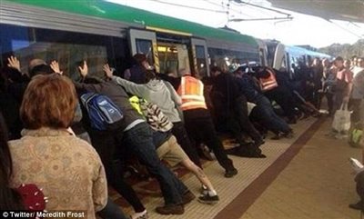 Οι επιβάτες και το προσωπικό του σιδηροδρομικού σταθμού στο Περθ της Αυστραλίας ένωσαν τις δυνάμεις τους προκειμένου να διασώσουν έναν άντρα του οποίου το πόδι παγιδεύτηκε στο χάσμα που υπάρχει μεταξύ τρένου και πλατφόρμας, όταν αυτός προσπάθησε βιαστικά να μπει μέσα στο τρένο στις 8.50 το πρωί της Τετάρτης.Το τρένο έχει βάρος 90 τόνους, αλλά αυτό δεν εμπόδισε τους συνεπιβάτες του άτυχου άντρα και τους εργαζόμενους στον σιδηροδρομικό σταθμό να σηκώσουν όλοι μαζί τα τρένο για να απεγκλωβίσουν το πόδι του επιβάτη.
