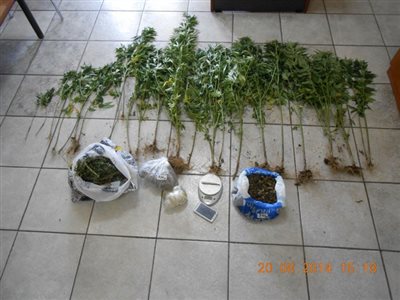 Στα χέρια των αστυνομικών του Τμήματος Δίωξης Ναρκωτικών Δυτικής Θεσσαλονίκης έπεσε το πρωί της Τετάρτης ένας άνδρας, 46 ετών, εις βάρος του οποίου σχηματίστηκε δικογραφία για παράβαση του νόμου περί εξαρτησιογόνων ουσιών. Συγκεκριμένα, έπειτα από ενδελεχή αστυνομική έρευνα εντοπίστηκε σπίτι στην περιοχή Άνω Πόλης, όπου ο συλληφθείς καλλιεργούσε δενδρύλλια κάνναβης και κατείχε ποσότητα χασίς. Από την οικία και την κατοχή του 46χρονου κατασχέθηκαν συνολικά: • 26 δενδρύλλια κάνναβης • 608 γραμμάρια χασίς • αποξηραμένο δενδρύλλιο κάνναβης • ηλεκτρονική ζυγαριά ακριβείας και • κινητό τηλέφωνο που χρησιμοποιούσε για τις παράνομες συναλλαγές του. O συλληφθείς θα οδηγηθεί στον εισαγγελέα πλημμελειοδικών Θεσσαλονίκης.    zougla