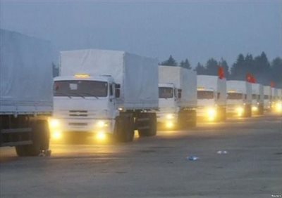Τα πρώτα φορτηγά, λευκού χρώματος, πέρασαν τη συνοριακή διάβαση και εισήλθαν στο ρωσικό έδαφος ενώ άλλα φορτηγά ακολουθούσαν από απόσταση. Η αυτοκινητοπομπή με τα περίπου 220 λευκά οχήματα είχε εισέλθει στην Ουκρανία χωρίς την άδεια της κυβέρνησης του Κιέβου.
