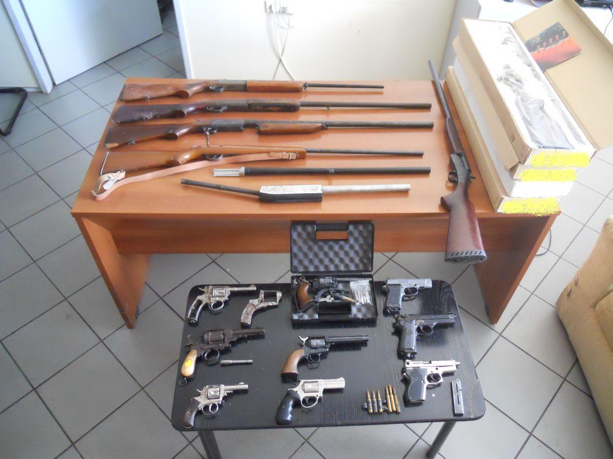 - κορμός περιστρόφου & κορμός κυνηγετικού όπλου, από τα οποία είχαν αφαιρεθεί όλα τα εξαρτήματά τους,