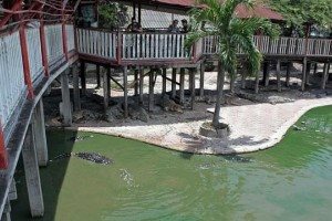 Πέφτοντας σε λίμνη γεμάτη κροκόδειλους κοντά στην Μπανγκόκ έδωσε τέλος στη ζωή της την Παρασκευή μια 65χρονη στην Ταϊλάνδη.