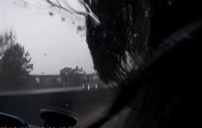 Η κάμερα που είχε στο αυτοκίνητο κατέγραψε το περιστατικό αλλά αυτό που αξίζει περισσότερο ήταν το βλέμμα του οδηγού αμέσως μετά την πτώση που είχε ως αποτέλεσμα να ακινητοποιηθεί το αυτοκίνητο.