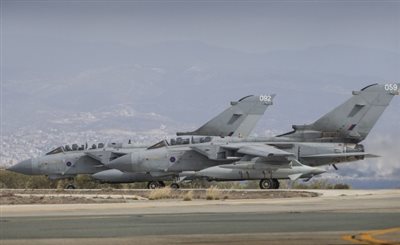 Έξι αεριωθούμενα Τορνέιντο, που κανονικά εδρεύουν στη βάση Μάρχαμ της RAF στη Βρετανία, σταθμεύουν στην Κύπρο από τον Αύγουστο. Τις τελευταίες έξι εβδομάδες έχουν εμπλακεί στη συλλογή πληροφοριών και στην αναγνώριση πάνω από το Ιράκ.