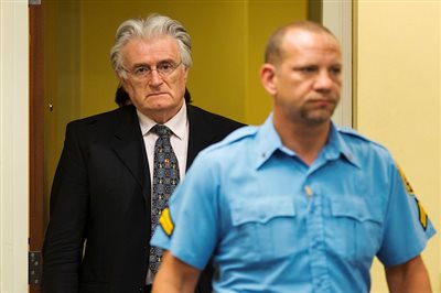 Ο Κάρατζιτς, ο οποίος υπερασπίσθηκε μόνος του τον εαυτό του, απορρίπτει το δικαστήριο υποστηρίζοντας ότι είναι ένα εργαλείο της στρατιωτικής συμμαχίας του ΝΑΤΟ, οι αεροπορικές επιδρομές της οποίας οδήγησαν στον τερματισμό του πολέμου. Υποστηρίζει πως δεν ήταν επικεφαλής των ανθρώπων οι οποίοι πραγματοποίησαν τις σφαγές.