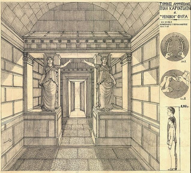Ο σχεδιαστής-ζωγράφος Γεράσιμος Γερολυμάτος, παρουσίασε στο προσωπικό του blog, νέα σχέδια αναπαράστασης της πύλης στην Αμφίπολη και των Καρυάτιδων με βάση τα επίσημα στοιχεία των διαστάσεων που έχει δώσει η αρχαιολογική ομάδα.