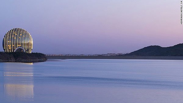 Το σχήμα του μοιάζει με τον «ανατέλλοντα ήλιο», ο οποίος συμβολίζει την ταχέως αναπτυσσόμενη οικονομία της Κίνας, η είσοδος του ξενοδοχείου έχει το σχήμα του στόματος ψαριού, σύμβολο ευημερίας για τους Κινέζους, ενώ από τη μία πλαϊνή πλευρά θυμίζει «χτένι», σύμβολο καλής τύχης στον κινεζικό πολιτισμό. Πρόκειται για ένα από τα ομορφότερα ξενοδοχεία στον κόσμο, που βρίσκεται μόλις εξήντα χιλιόμετρα έξω από το κέντρο του Πεκίνου, στην όχθη της λίμνης Yanqi, και είναι χτισμένο σε μοντέρνο στυλ, που δεν παραλείπει όμως να αναδεικνύει και τα παραδοσιακά στοιχεία του κινεζικού πολιτισμού. Το 5άστερο Sunrise Kempinski Hotel ετοιμάζεται να υποδεχθεί τους πρώτους επισκέπτες του στα μέσα Νοεμβρίου και ήδη θεωρείται το καλύτερο ξενοδοχείο για το 2014.