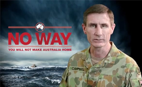 Η νέα αντι-μεταναστευτική καμπάνια της κυβέρνησης στην Αυστραλία έχει προκαλέσει θύελλα αντιδράσεων. Η αφίσα της Αυστραλίας δείχνει μία βάρκα στη φουρτουνιασμένη θάλασσα και έχει ένα μήνυμα, το οποίο αναφέρει: «Δεν υπάρχει περίπτωση. Δεν πρόκειται να κάνετε την Αυστραλία σπίτι σας». Το μήνυμα φυσικά απευθύνεται στους μετανάστες που σκοπεύουν να ταξιδέψουν στην Αυστραλία για να ζητήσουν άσυλο. Η αφίσα, μάλιστα, συνοδεύεται και από σχετικό βίντεο, το οποίο έχει μεταφραστεί σε 17 γλώσσες.