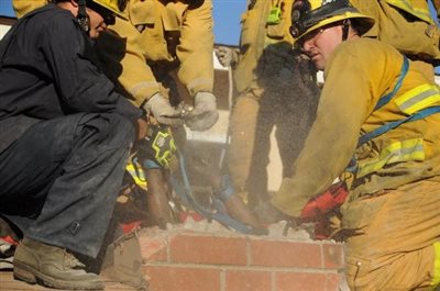 Η επιχείρηση απεγκλωβισμού διήρκεσε δύο ολόκληρες ώρες κατά τις οποίες οι πυροσβέστες αναγκάστηκαν να γκρεμίσουν την καμινάδα και να περιχύσουν την δράστιδα της διάρρηξης με γενναίες ποσότητες χλιαρού σαπουνόνερου.