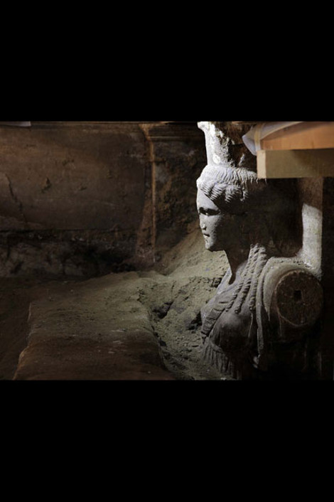 Το κεφάλι της Σφίγγας που βρέθηκε χθες φέρει πόλο (καπέλο) όπως οι όμορφες Κόρες που στέκουν στη δεύτερη είσοδο. Επίσης, στο μαλλιά της Σφίγγας βρέθηκαν ίχνη κόκκινου χρώματος, ενώ ίχνη κόκκινου και μπλε χρώματος είχαν βρεθεί και στα κεφάλια των Καρυάτιδων, όπως σημειωνόταν στο δελτίο Τύπου του υπουργείου Πολιτισμού όταν πρωτοείχαν έρθει στο φως.