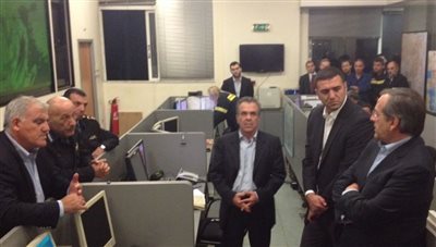 Στο Κέντρο Επιχειρήσεων της Πυροσβεστικής στο Χαλάνδρι βρέθηκε το βράδυ της Παρασκευής ο πρωθυπουργός Αντώνης Σαμαράς, για τη σύσκεψη σχετικά με την αντιμετώπιση των προβλημάτων που προκλήθηκαν στο Λεκανοπέδιο, από την σφοδρή κακοκαιρία.