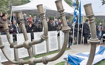 Αποκαλυπτήρια του μνημείου στον χώρο του Αριστοτελείου Πανεπιστημίου, σε ανάμνηση του παλαιού εβραϊκού νεκροταφείου.
