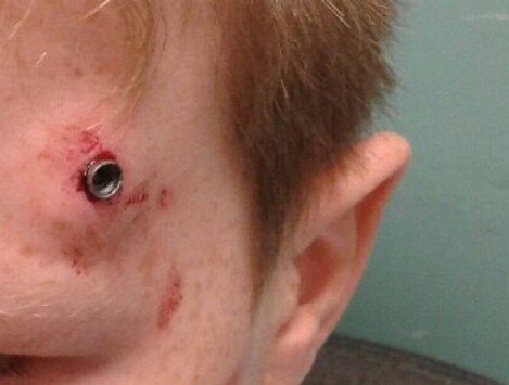 Ανατριχίλα προκαλεί η φωτογραφία ενός 11χρονου αγοριού στην Αγγλία, ο οποίος πυροβολήθηκε στο κεφάλι ενώ βρισκόταν σε γήπεδο ποδοσφαίρου στην επαρχία Durham, με την σφαίρα να έχει κυριολεκτικά καρφωθεί στον κρόταφό του και τον ίδιο να σώζεται από θαύμα.