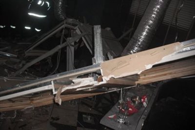 Το ευτύχημα ήταν ότι αν και μεγάλος ο αριθμός των ατόμων που τραυματίστηκαν κατά την πτώση της οροφής οι περισσότεροι είχαν ελαφρά τραύματα. Ασθενοφόρα του ΕΚΑΒ μετέφεραν τους τραυματίες ενώ πολλοί απο αυτούς έφυγαν για τις πρώτες βοήθειες και με δικά τους μέσα. Συνολικά η υπηρεσία μας κινητοποίησε άμεσα δύο οχήματα με 6 πυροσβέστες του 1ου Π.Σ. (στον τομέα του οποίου ήταν το συμβάν ) και 3 οχήματα με 8 πυροσβέστες από τον σταθμό μας. Στο σημείο προσήλθε άμεσα και ο Διοικητης του 1ου Π.Σ» αναφέρεται στο κείμενο που συνοδεύει τις φωτογραφίες.