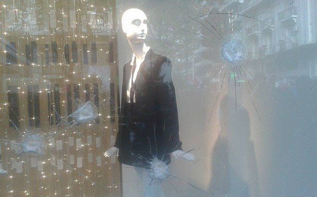 Κάποιοι από τους διαδηλωτές προκάλεσαν φθορές σε τζαμαρίες καταστημάτων.