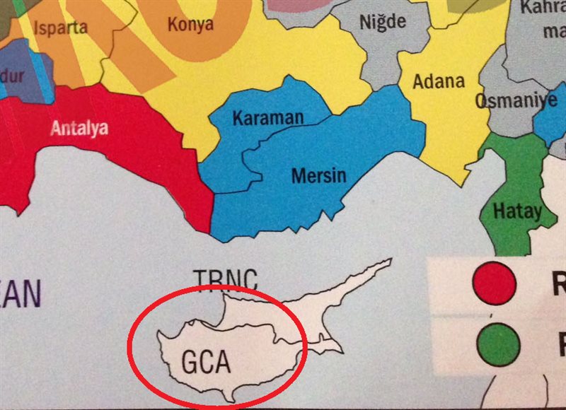 Νέα προκλητική ενέργεια της Τουρκίας πέρασε απαρατήρητη στο Ελληνοτουρκικό Επιχειρηματικό Forum πραγματοποιήθηκε την Παρασκευή στη χώρα μας. Κατά τη διάρκεια των ομιλιών των κυρίων Σαμαρά και Νταβούτογλου μοιράστηκε στους παρευρισκομένους επίσημο φυλλάδιο του υπουργείου Οικονομικών της Τουρκίας όπου στον χάρτη που είχε εικονογραφημένο η Κυπριακή Δημοκρατία εμφανίζεται με τα αρχικά GCA από τις λέξεις Greek Cypriot Administration, δηλαδή «Ελληνοκυπριακή διοίκηση». Το θέμα προκάλεσε τη δυσαρέσκεια πολλών παρευρισκομένων στο Forum. Δείτε τις φωτογραφίες