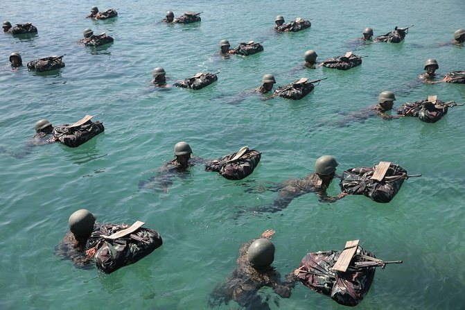 Οι ασκήσεις φωτογραφίες από τις οποίες έδωσε πρόσφατα στη δημοσιότητα ο τουρκικός Στρατός φαίνεται η εκπαίδευση των ανδρών των ειδικών δυνάμεων της Τουρκίας με τη χρήση ειδικών σακιδίων τα οποία μετατρέπονται σε σωσίβια ικανά ώστε να κολυμπήσει με τη βοήθειά τους ένας εξοπλισμένος στρατιώτης σε απόσταση αρκετών εκατοντάδων μέτρων.
