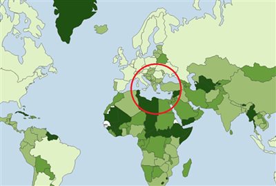 Στην Ευρώπη, η Ελλάδα, η Πορτογαλία, οι χώρες των Βαλκανίων (πλην της Ρουμανίας) και της πρώην Γιουγκοσλαβίας, της Βαλτικής, η Ουγγαρία, η Σλοβακία, η Μολδαβία και η Ισλανδία εμφανίζονται να αντιμετωπίζουν χαμηλό κίνδυνο, ενώ το Μαυροβούνιο και η Λευκορωσία είναι σε δυσμενέστερη θέση.