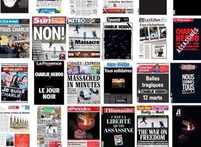 Ο Τύπος παγκοσμίως τίμησε την μνήμη των νεκρών στέκοντας στο πλάι των οικογενειών των δημοσιογράφων που δολοφονήθηκαν. Τα πρωτοσέλιδα από τις μεγαλύτερες εφημερίδες του πλανήτη είναι αφιερωμένα στην επίθεση στο Παρίσι με κατακραυγή και υπέρ της ελευθερίας του Τύπου. Μια εντυπωσιακή εικόνα που έχει αναρτηθεί στο Twitter δείχνει όλα τα πρωτοσέλιδα των εφημερίδων που κυκλοφορούν την Πέμπτη, σε διάφορες χώρες του κόσμου, και καταδικάζουν την τζιχαντιστική επίθεση στη γαλλική σατιρική εφημερίδα Charlie Hebdo στο Παρίσι. Βεβαίως και σε περίοπτη θέση το «Je suis Charlie». defencenet