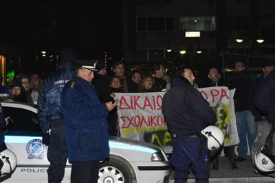 Τελικώς οι σχολικοί φύλακες αφέθηκαν ελεύθεροι μετά το τέλος της ομιλίας του προέδρου του ΠΑΣΟΚ, αλλά τι συμπέρασμα είναι πώς αυτοί που ήταν μέσα στο Δημοτικό Ωδείο για να ακούσουν την ομιλία Βενιζέλου ήταν λιγότεροι απ’ αυτούς που διαμαρτύρονταν απ’ έξω.
