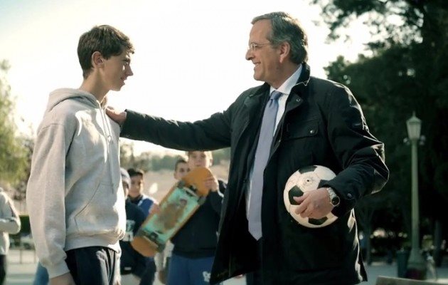 Στο πρώτο προεκλογικό βίντεο της Νέας Δημοκρατίας, ο Πρωθυπουργός Αντώνης Σαμαράς, συναντά μια παρέα νέων που παίζουν ποδόσφαιρο και ο Νικόλας του αναφέρει τον προβληματισμό του...