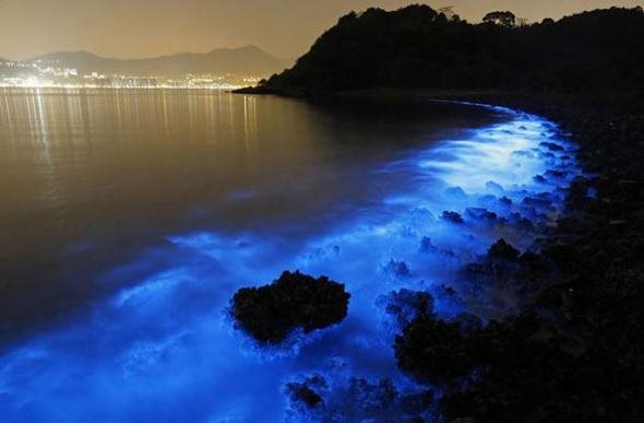 Ένα περίεργο φαινόμενο παρουσιάζεται από τη νύχτα της 22ης Ιανουαρίου καθώς οι ακτές του Χονγκ Κονγκ έγιναν μπλε ενώ τα νερά φωσφορίζουν. Το φαινόμενο είναι γνωστό ως βιοφωτισμός ή Sea Sparkle. Ωστόσο, αυτό το μαγικό σκηνικό προκαλείται από πλήθος μικροσκοπικών δινομαστιγωτών που ονομάζονται noctiluca scintillans και δηιουργούνται από τη ρύπανση του περιβάλλοντος. Tο φαινόμενο αυτό στις ακτές του Χονγκ Κονγκ προκλήθηκε από γεωργικές απορροές λιπασμάτων και άλλων χημικών στη θάλασσα από τη βροχή. Προς το παρόν οι φωτογράφοι απολαμβάνουν τις εικόνες και απαθανατίζουν εντυπωσιακά τοπία, ενώ στη συνέχεια αναμένεται να παρθούν δραστικά μέτρα για την αντιμετώπιση της μόλυνσης των υδάτων. Δείτε τις φωτογραφίες