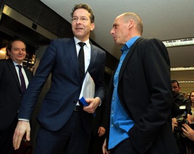Αμοιβαίες υποχωρήσεις συμφώνησαν -έστω και ατύπως- οι κκ. Γέρουν Ντάισελμπλουμ και Γιάννης Βαρουφάκης, με στόχο την επανέναρξη των συζητήσεων και την υποβολή των προτάσεων στο Eurogroup. Ο κ. Ντάισελμπλουμ δεν απέκλεισε στο ενδεχόμενο να δειχτεί η Ευρωζώνη την απόσυρση της τρόικας και διαμόρφωση νέου προγράμματος, ενώ ο Γιάννης Βαρουφάκης έκανε λόγο για συνεργασία τόσο με τους ευρωπαϊκούς θεσμούς όσο και με το ΔΝΤ στο πλαίσιο διαμόρφωσης νέου προγράμματος.