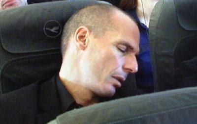 Ωστόσο, κατά τη διάρκεια της πτήσης, προς το Βερολίνο, ο Γιάννης Βαρουφάκης απαθανατίστηκε στο κάθισμα του αεροπλάνου να κοιμάται.