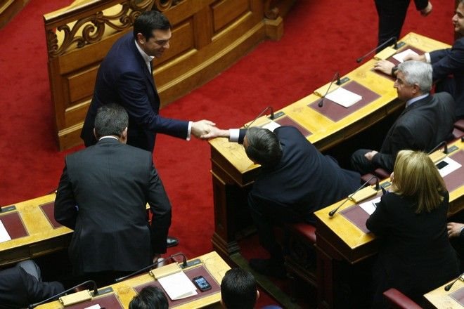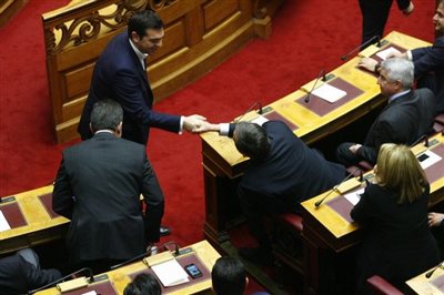 Η πρώτη πανοραμική της νέας Βουλής στην ολομέλεια ενός σώματος με ιδιαίτερο ενδιαφέρον, το οποίο για πρώτη φορά στην κοινοβουλευτική ιστορία γέρνει προς τα αριστερά με 149 έδρες στο ΣΥΡΙΖΑ και άλλες 15 στο ΚΚΕ.