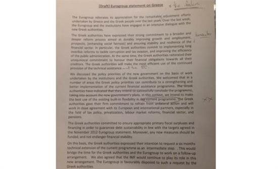 Κυβερνητικές πηγές σημείωναν «Στο Eurogroup παρουσιάστηκε ως βάση συζήτησης ένα κείμενο που αποτελεί ριζική υπαναχώρηση από την κοινή ανακοίνωση του κ. Ντάισελμπλουμ με τον Πρωθυπουργό της Ελλάδας Αλέξη Τσίπρα, την προηγούμενη Πέμπτη.