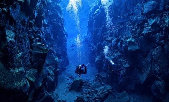 Τα κρυστάλλινα, πεντακάθαρα νερά ρέουν μέσα από τη ρωγμή ανάμεσα στη Βόρεια Αμερικανική και την Ευρασιατική ήπειρο, οι οποίες απομακρύνονται η μία από την άλλη κατά 2 εκατοστά κάθε χρόνο.