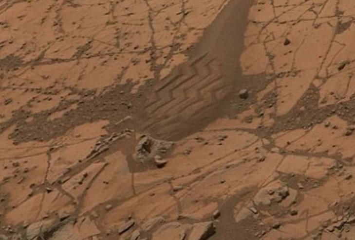 Από τις φωτογραφίες μπορεί να δει κανείς μέχρι και τα σημάδια που άφησαν στην επιφάνεια του Άρη τα λάστιχα του Curiosity.
