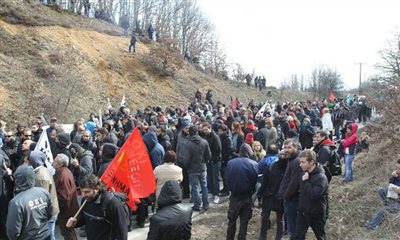 Επεισόδια ανάμεσα σε δυνάμεις της Αστυνομίας και διαδηλωτές που αντιτίθενται στην εξόρυξη χρυσού έγιναν το μεσημέρι της Παρασκευής (20/03) στις Σκουριές Χαλκιδικής. Από τη διασταύρωση της Μεγάλης Παναγιάς, όπου υπήρχε συγκέντρωση, με πρωτοβουλία των Επιτροπών Αγώνα Χαλκιδικής και Θεσσαλονίκης ενάντια στην εξόρυξη χρυσού, διαδηλωτές κατάφεραν, με τη χρήση οχημάτων 4x4, να πλησιάσουν σε πλαϊνή είσοδο των εγκαταστάσεων της επένδυσης για να δουν την καταστροφή που καταγγέλλουν ότι έχει γίνει στο δάσος. Βρήκαν, όμως, μπροστά τους δύναμη της Αστυνομίας, που τους έφραξε τον δρόμο προς την είσοδο. Τότε, κάποιοι από τους διαδηλωτές επιχείρησαν να παρακάμψουν το μπλόκο, κινούμενοι μέσα από το δάσος και οι αστυνομικοί έκαναν χρήση χημικών για να τους εμποδίσουν. Σύμφωνα με τους διαδηλωτές έγινε και μία προσαγωγή. newsbomb
