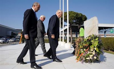 Ο Λοράν Φαμπιούς, ο Φρανκ-Βάλτερ Σταϊνμάγερ και ο Χοσέ Μανουέλ Γκαρθία-Μαργκάγιο, τίμησαν τα θύματα της συντριβής του Airbus A320 μπροστά στη στήλη που έχει τοποθετηθεί στη μνήμη τους στο αεροδρόμιο Ελ Πρατ της Βαρκελώνης.