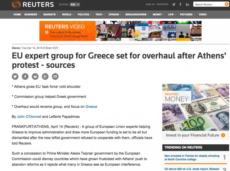 «Ο Γιουνκέρ είπε στον Τσίπρα κατά την τελευταία τους συνάντηση ότι η θητεία της Task Force λήγει και αναμένεται να αντικατασταθεί από έναν νέο θεσμό με παρόμοιο ρόλο, αλλά που θα αφορά όλα τα κράτη – μέλη», ανέφερε στο Reuters ανώτερος έλληνας αξιωματούχος.