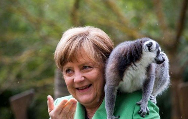 Η Άνγκελα Μέρκελ άφησε για λίγο τα ζητήματα της υψηλής πολιτικής και επισκέφθηκε…ζωολογικό κήπο στην Ανατολική Γερμανία.Όπως μαρτυρούν οι φωτογραφίες, στη σύντομη επίσκεψή της, η γερμανίδα καγκελάριος ανέπτυξε μια ιδιαίτερη σχέση με ένα παράξενο ζώο. Ένας λεμούριος φαίνεται ότι «αγάπησε» την κ. Μέρκελ και δεν σταμάτησε να κάθεται στον ώμο της και να παίζει μαζί της.