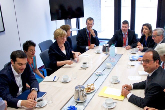 Το απόγευμα της Τρίτης ο Αλέξης Τσίπρας συναντήθηκε με την Γερμανίδα καγκελάριο, Άνγκελα Μέρκελ, τον Γάλλο πρόεδρο Φρανσουά Ολάντ και τον πρόεδρο της Ευρωπαϊκής Επιτροπής, Ζαν-Κλοντ Γιούνκερ.