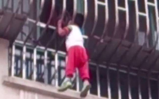 Ο μικρός Κινέζος για αδιευκρίνιστο λόγο αιωρούνταν έξω από τα κάγκελα του μπαλκονιού του στον τρίτο όροφο πολυκατοικίας, ενώ το
