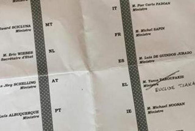 Αυτό συνέβη γιατί δεν είχε εκτυπωθεί νέα λίστα, αφού στο έγγραφο αναγράφονται οι θέσεις στις οποίες κάθισαν οι Υπουργοί στις 25 Απριλίου. parapolitika