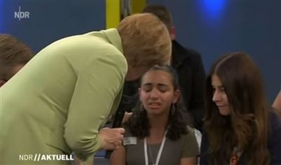 Η μικρή Reem που με την οικογένεια της είναι πρόσφυγες στη Γερμανία βρισκόταν στο στούντιο όπου μιλούσε η Άνγκελα Μέρκελ. Όταν άκουσε την καγκελάριο να λέει λίγο πολύ ότι δεν μπορούσε να αποτρέψει την απέλασή τους, η μικρή ξέσπασε σε λυγμούς.