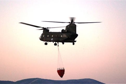 - 4 Ελικόπτερα CH-47 Chinook (με κάδο 7 τόνων) τα οποία επιχείρησαν (για πρώτη φορά ταυτόχρονα) και πραγματοποίησαν 83 ρίψεις νερού στις εστίες των πυρκαγιών σε Καρέα και Μαλακάσα Αττικής. Συνολικά εκτέλεσαν 17 ώρες πτήσης.