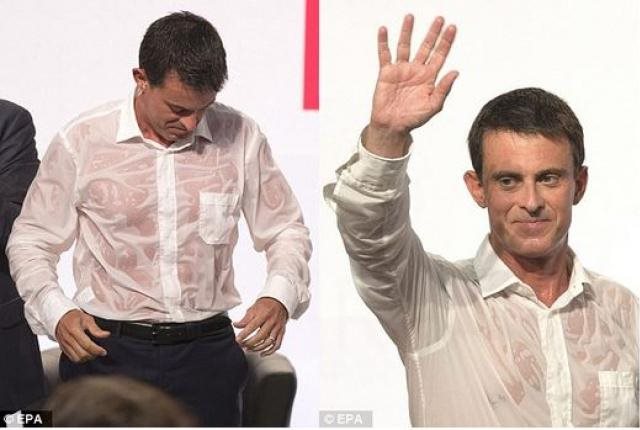Μούσκεμα από τον ιδρώτα έγινε στην χθεσινή του ομιλία ο Γάλλος πρωθυπουργός, Μάνουελ Βαλς, και τα φλας των φωτογράφων ήταν εκεί απαθανατίζοντάς τον να μιλά στο κοινό με βρεγμένο πουκάμισο, και όπως ήταν λογικό οι εικόνες κάνουν τον γύρο του κόσμου.