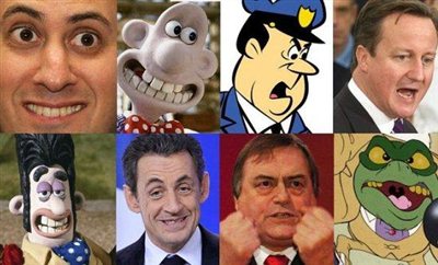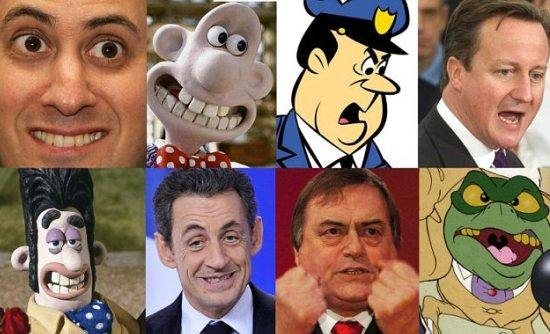 Η ζωή γίνεται έμπνευση για τον κινηματογράφο, όπως φαίνεται, καθώς ήρωες κινουμένων σχεδίων... είναι σαν δίδυμα αδέρφια με γνωστούς... Βρετανούς πολιτικούς. Δείτε φωτογραφίες και κάντε τις συγκρίσεις σας.... Ed Miliband και Wallace Nicolas Sarkozy και Victor Quartermaine  David Cameron και Αστυνόμος Dibble  Duncan Smith, υπουργός των Tory, και Humpty Dumpty Eric Pickles, υπουργός Επικοινωνιών και Peter Griffin  Louise Mensch, βουλευτής των Tory, και Rapunzel  Boris Johnson, δήμαρχος του Λονδίνου και Barney Rubble  John Major, πρώην πρωθυπουργός και Carl Fredricksen  Τony Blair, πρώην πρωθυπουργός και Donkey Sally Bercow, σύζυγος του εκπροσώπου της Βουλής των Κοινοτήτων και Prince Charming John Prescott και Silas Greenback  William Hague, υπουργός Εξωτερικών και Mr Magoo Lord Tebbit και Anton Ego ΠΗΓΗ: DAILY MAIL
