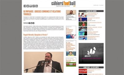Για ακόμα μία φορά δημοσίευμα από το εξωτερικό καταπιάνεται με τα ύποπτα τεκταινόμενα στον χώρο του ελληνικού ποδοσφαίρου. Το γαλλικό σάιτ cahiersdufootball.net σε εκτενή αναφορά του, κάνει λόγο για την εμπλοκή του ονόματος του προέδρου του Ολυμπιακού, Βαγγέλη Μαρινάκη, με την υπόθεση της «εγκληματικής οργάνωσης».