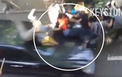 Στο βίντεο θα δείτε τους διαδηλωτές να τινάζονται στον αέρα, αφού ο Τούρκος έπεσε καταπάνω τους, ενώ ένας διαδηλωτής που πιάστηκε πάνω στο αυτοκίνητο, τον παρασέρνει μαζί του καθώς απομακρύνεται με ταχύτητα.