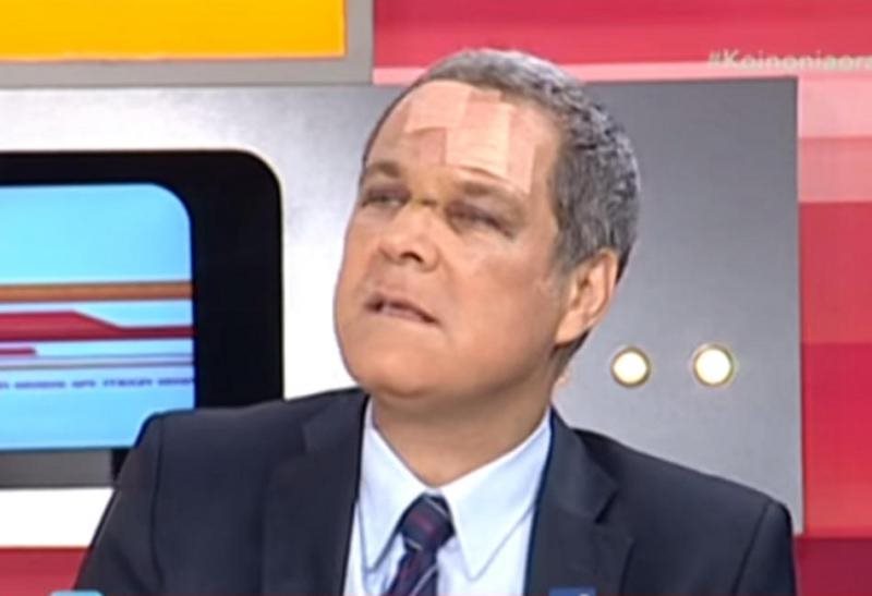 Ο επικεφαλής της «Δημιουργίας Ξανά» εμφανίστηκε με δύο μεγάλα τσιρότα στο μέτωπο ενώ είχε εμφανής εκδορές σε άλλα σημεία του προσώπου του. Όταν ρωτήθηκε σχετικά είπε πως τράκαρε στο Βόλο.