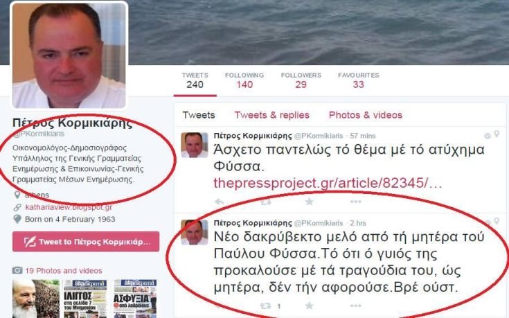 Οργή για τα tweet υπαλλήλου της Γ. Γ. Ενημέρωσης κατά των γονιών του Φύσσα