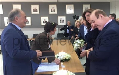 Το κλίμα στο δημαρχείο όπως μπορείτε να δείτε ήταν πανηγυρικό, με πλήθος δημοσιογράφων να καλύπτουν το γεγονός.