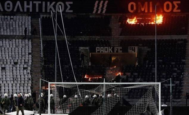 Όπως έγινε γνωστό σήμερα (24/3), στον ΠΑΟΚ επιβλήθηκε αφαίρεση πέντε βαθμών, ποινή τριών αγωνιστικών κεκλεισμένων των θυρών, καθώς και πρόστιμο ύψους 100.000 ευρώ, μόνο για τα όσα έγιναν στο ματς με τον Ολυμπιακό. Η συγκεκριμένη απόφαση είναι εφέσιμη.